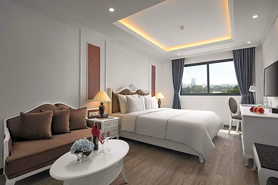This twin/double room features a mini-bar, air conditioning and seating area.